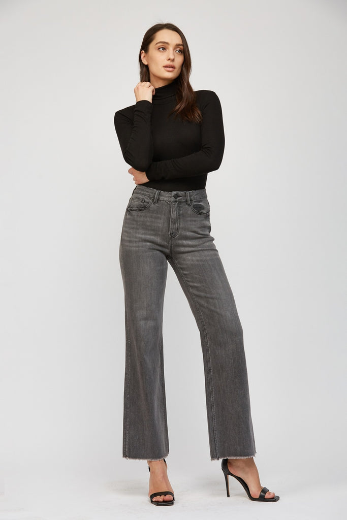 Grey High Rise Wide Leg Jeans