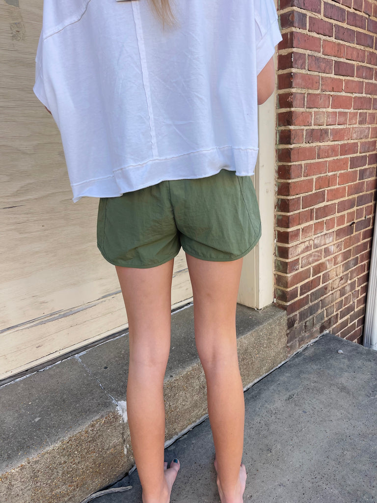 Light Olive Windbreaker Shorts