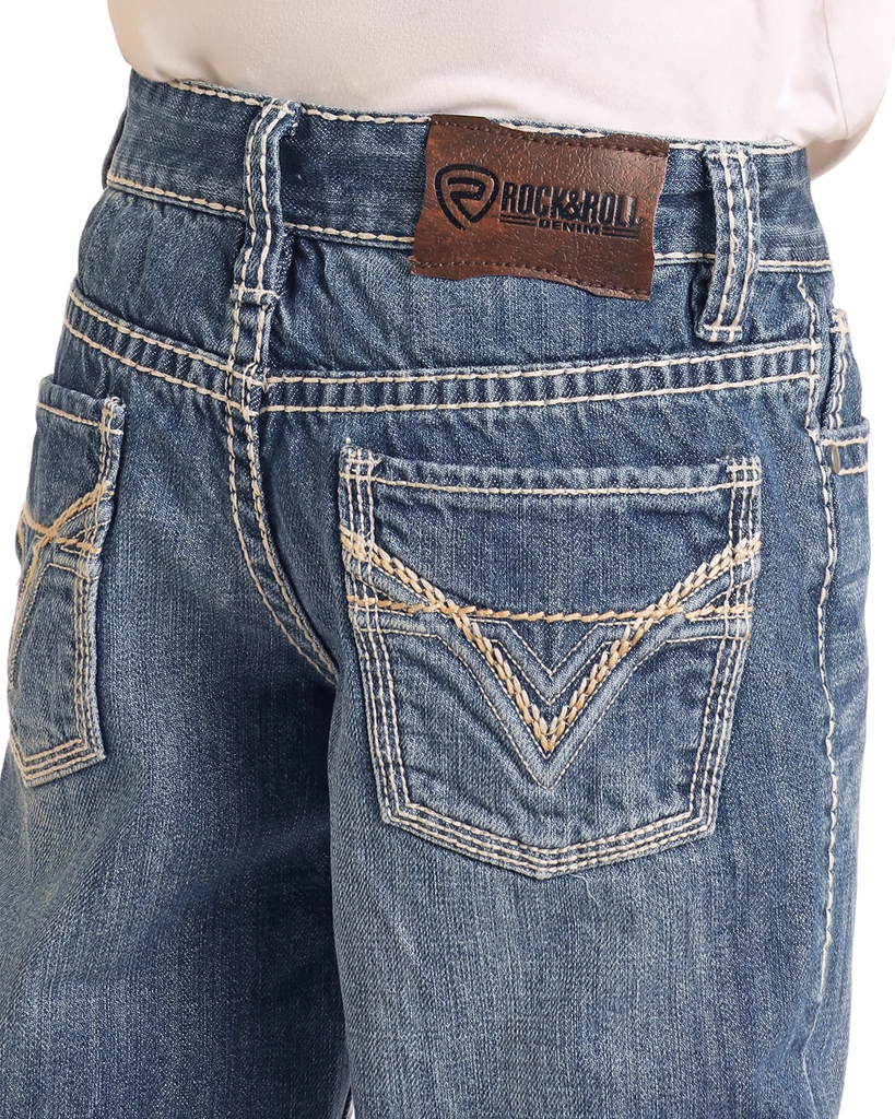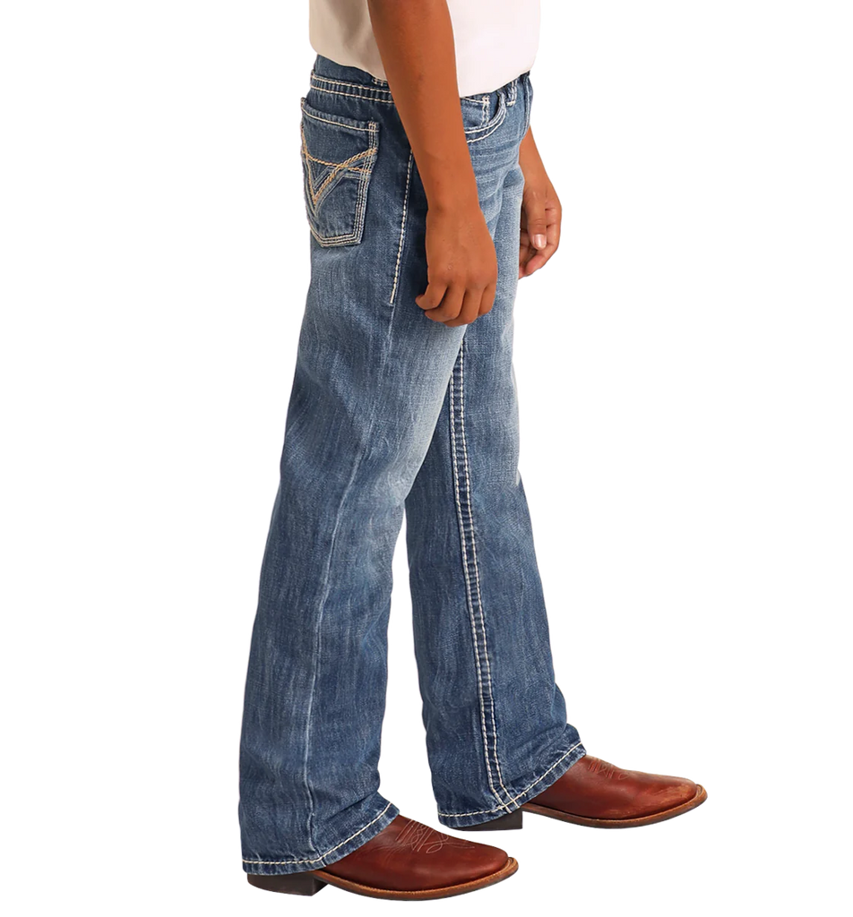 Youth Rock & Roll Denim Ladder Stitch Embroidery Bootcut Jeans / BB_9576