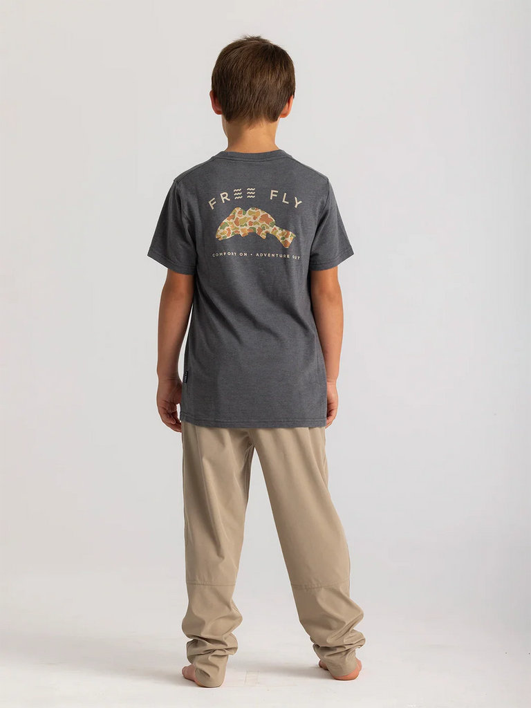 Free Fly Youth Vintage Camo Redfish Tee / Heather Black Sand