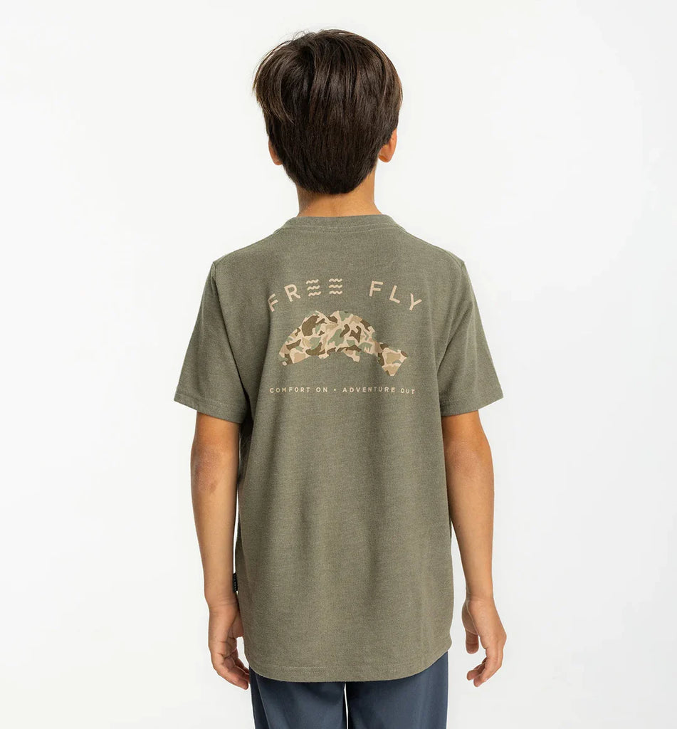 Free Fly Youth Vintage Camo Redfish Tee / Heather Fatigue