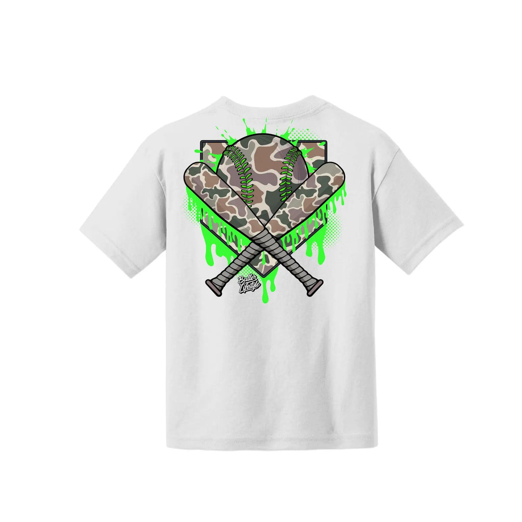 Youth Baller Lifestyle Baseball Camo Drip Tee / White