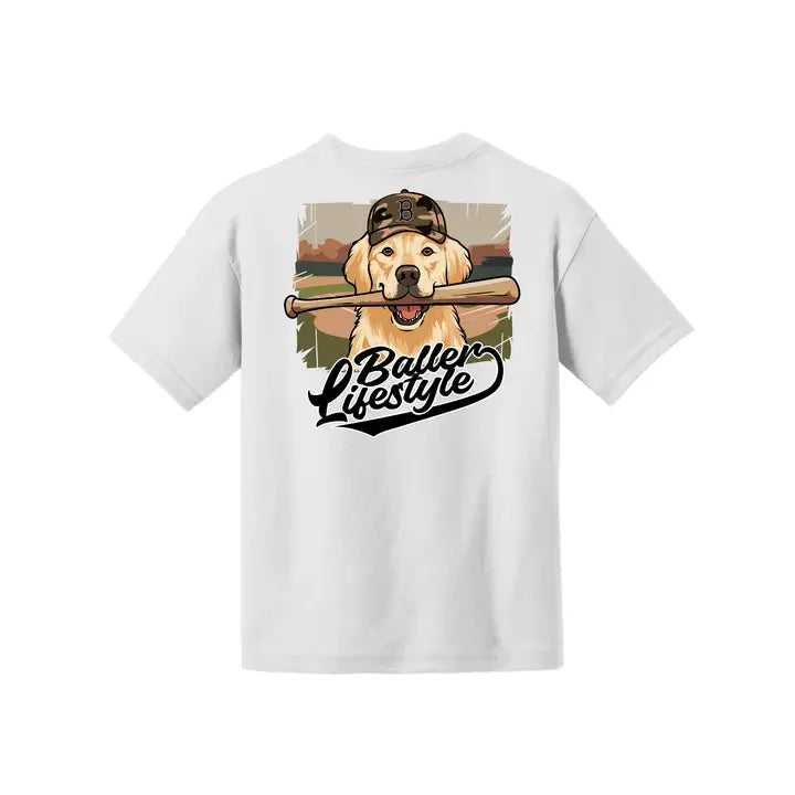 Youth Baller Lifestyle Baseball Dog Tee / White