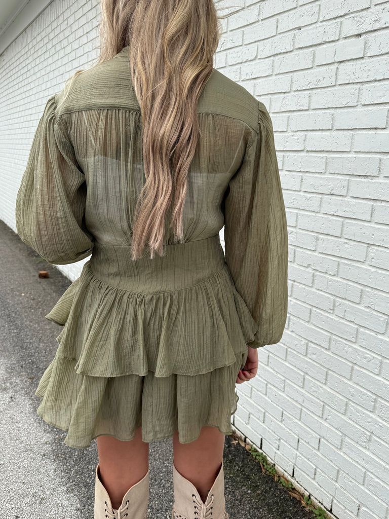 Light Olive Flutter Tiered Dress