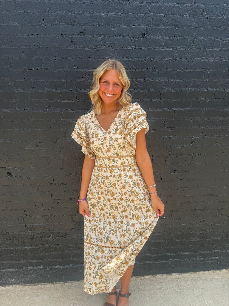 Red Wire-Ruffle Sleeveless V-Neck Dress