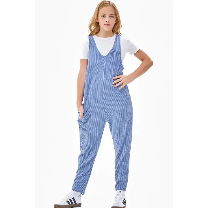 Youth Embossed Ribbed Sleeveless Jumpsuit / Blue