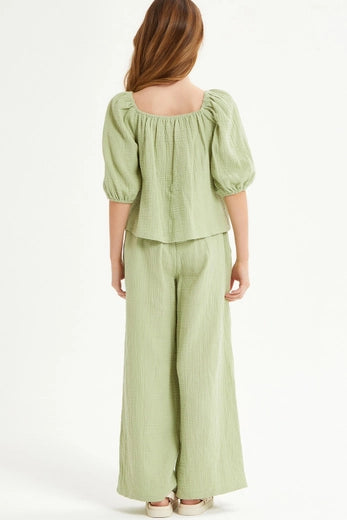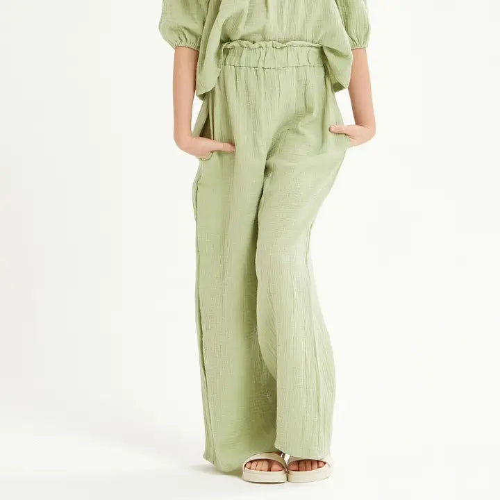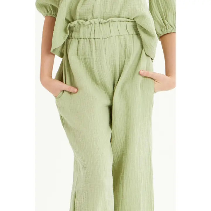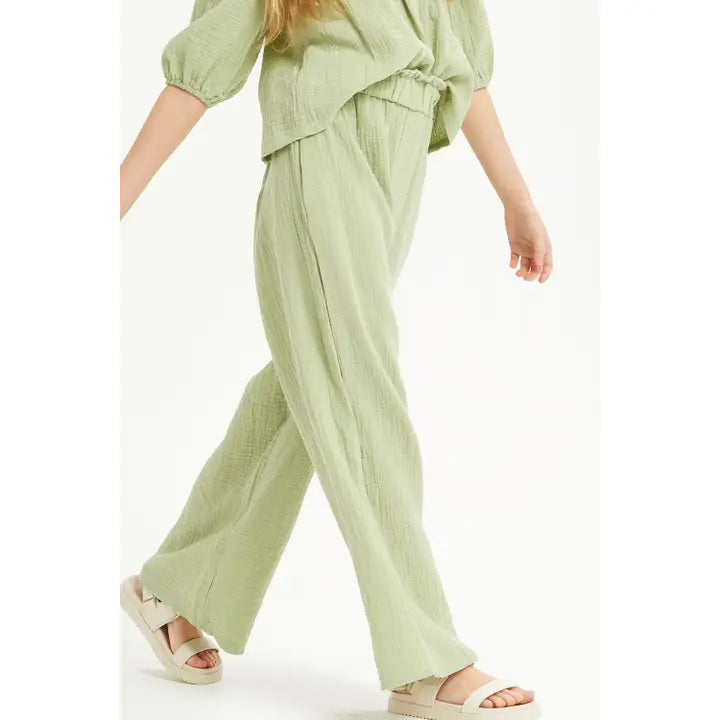 Youth Wide Leg Cotton Gauze Pants / Sage