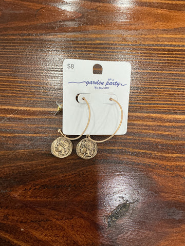 Gold 2" Hoop with Stamped Coin Charm Earring