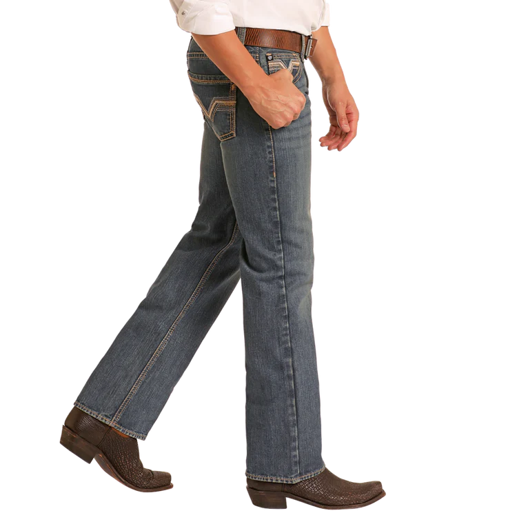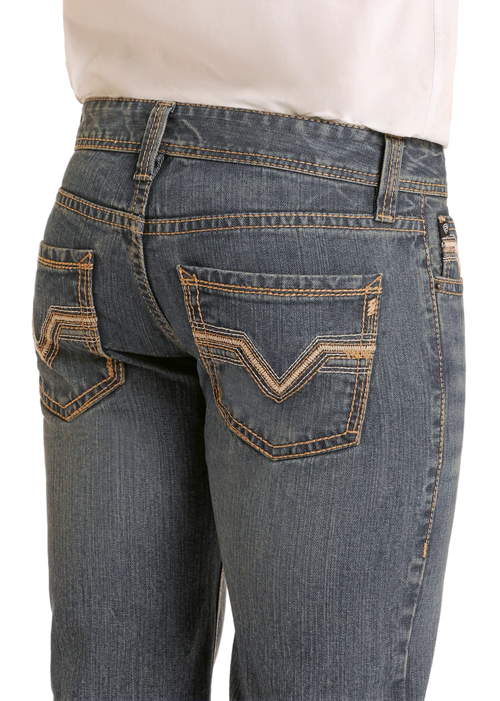ROCK & ROLL DENIM Regular Fit Medium Wash Rope Stitch Straight Leg Jeans BM1PD05565