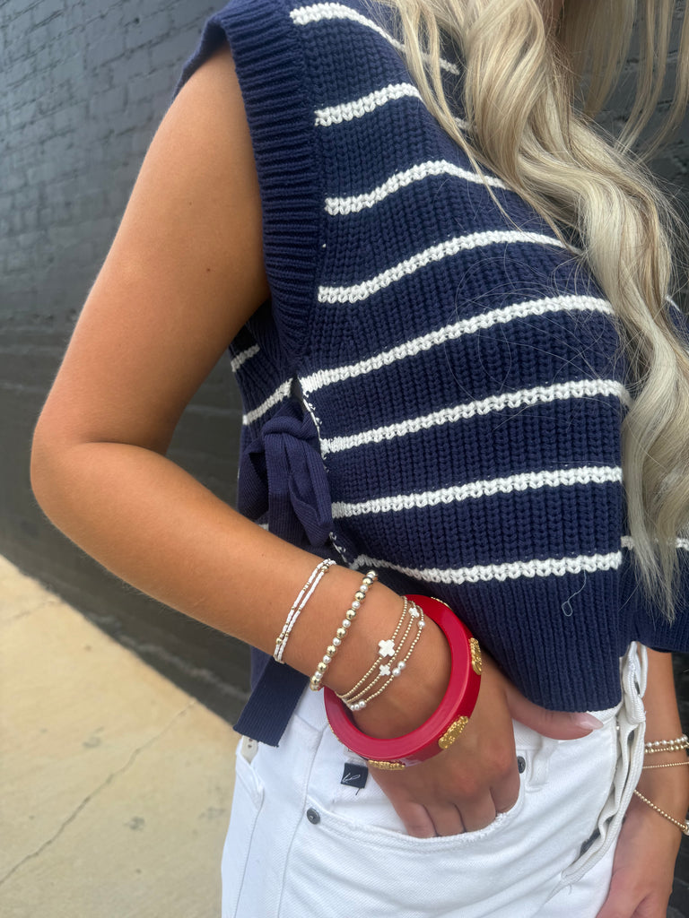 Navy/White Side Tie Sweater Vest