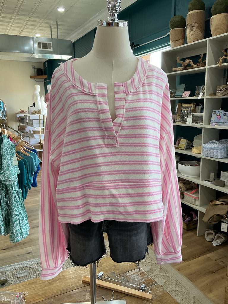 Pink Lantern Sleeve Oversize Stripe Top