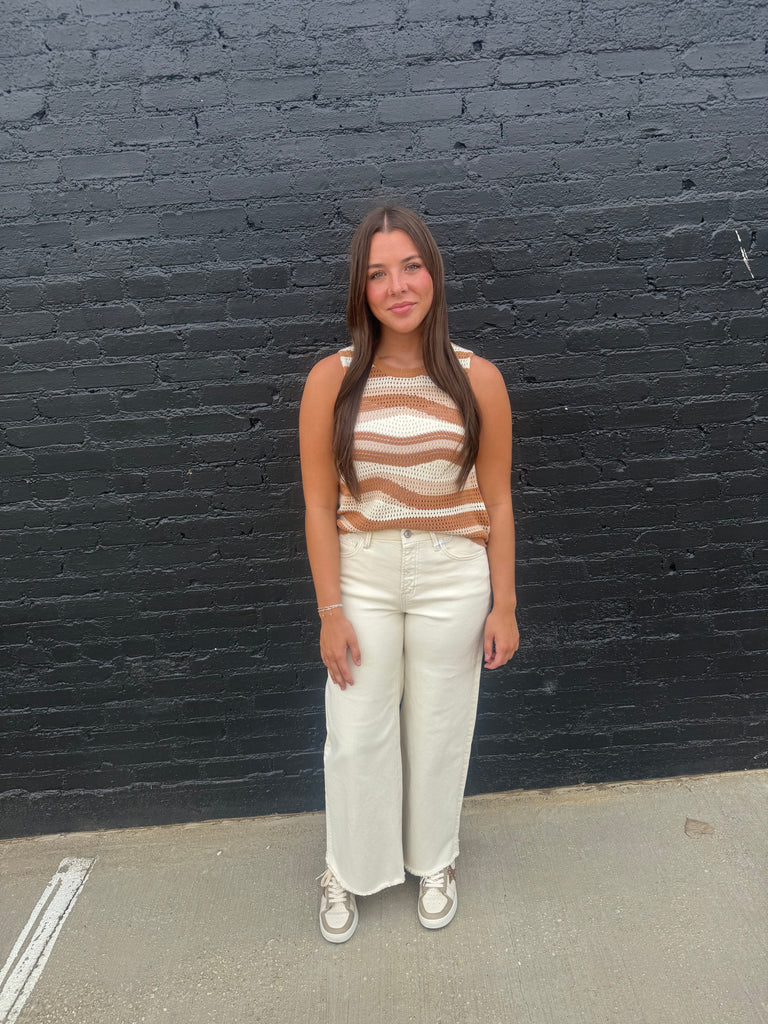 Cream Stripe Sweater Top