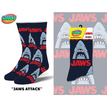The world's most infamous killer shark just swam onto your feet in these crew Jaws movie socks. Beware of the impending shark attack.